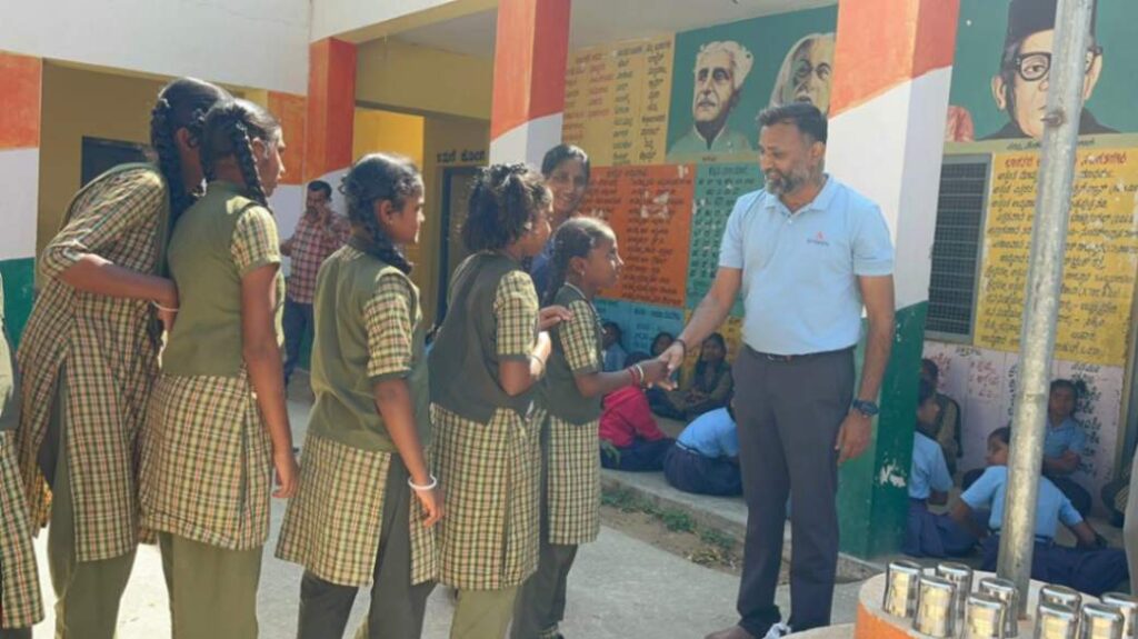 From Annapoorna Trust, Mr. Kiran B P, Regional Manager – Operations (Karnataka), addressed the students and staff, encouraging children to consume SaiSure multi nutrient health mix daily without missing it, have their midday meals regularly, and stay focused on their education. He also expressed heartfelt gratitude to Sasken Technologies for their unwavering support over the past three years.
